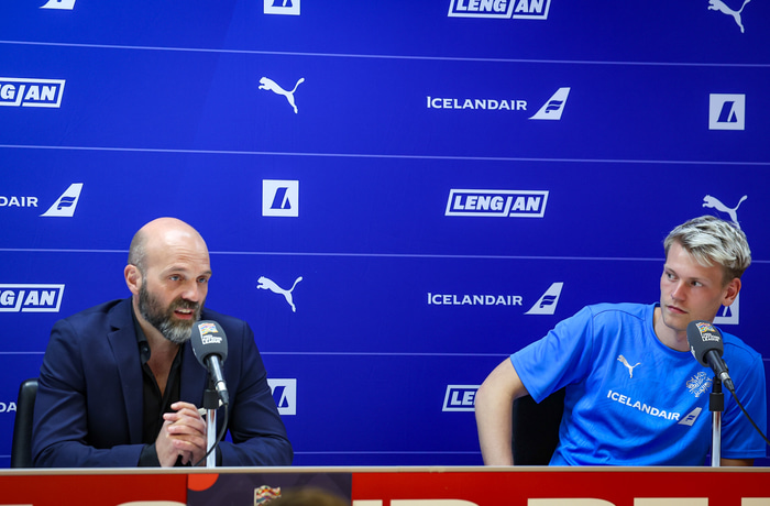 Arnar Gunnlaugsson landsliðsþjálfari og fyrirliðinn Orri Steinn Óskarsson voru spurðir að því á fréttamannafundi hvort þeir væru með skilaboð til þeirra Íslendinga sem væntanlegir eru á völlinn?