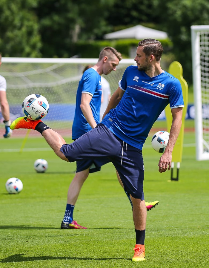 Já ég hlusta oftast a mína eigin tónlist í klefanum fyrir leiki, fer í nudd og spjalla aðeins við strákana. En svo þegar maður fer út á völl að hita upp þá kemst maður í gírinn.