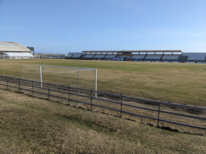 „Mér finnst hún eðlileg og upp að vissu marki, en ég er búinn að fara á mjög marga leiki í þessum fyrstu umferðum í deildinni og margir þessara leikja eru leiknir við mjög slæmar aðstæður. Þetta eru sannarlega ekki verstu aðstæðurnar sem við höfum spilað í og samt eru bara þrír leikir búnir. En auðvitað skilur maður umræðuna og í grunninn er þetta æfingahöll , en við fengum grænt ljós á að spila fyrsta heimaleikinn á tímabilinu hérna fyrir framan okkar fólk, frábær umgjörð hérna fyrir utan og fullt af fólki sem hefur lagt hönd á plóg við að gera umgjörðina eins góða og mögulega hún getur orðið. Hún hefði aldrei verið það hérna út á velli, það er klárt. Við spiluðum út á velli í fyrra og það var bara hreinasta hörmung," sagði Jón Þór.