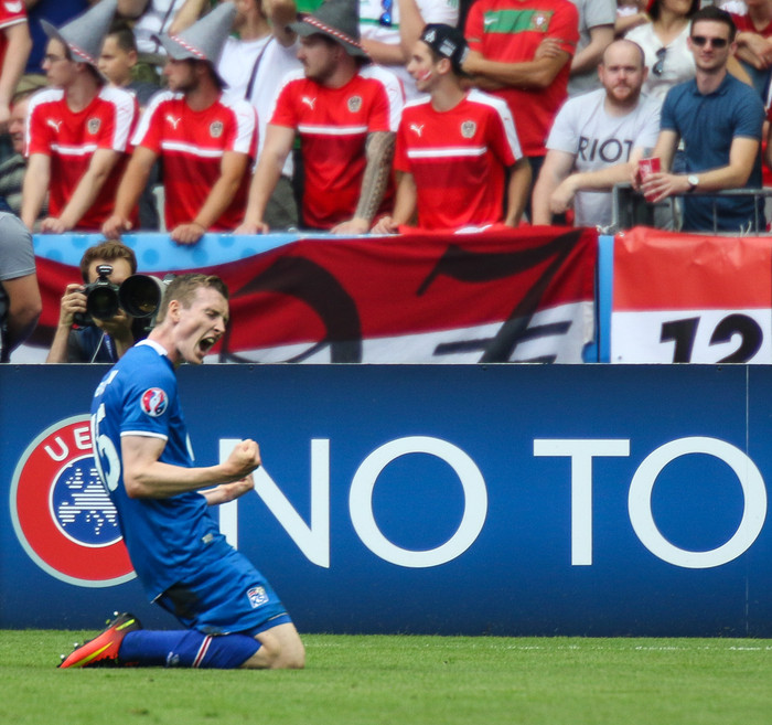 Jón Daði Böðvarsson skoraði fyrra mark Íslands gegn Austurríki en þetta var fyrsti sigur liðsins í sögunni, á stórmóti.