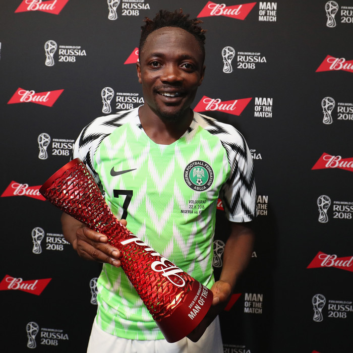 Ahmed Musa átti flottan leik gegn okkar mönnum þegar að hann gerði bæði mörk Nígeríu í leiknum í dag.