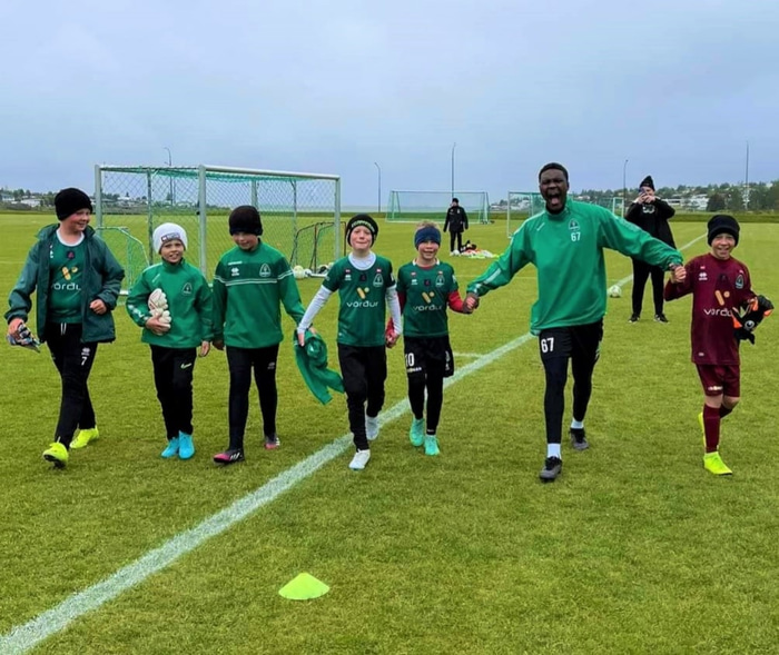 „Með þessu erum við fyrst og fremst að búa til mikilvægar fyrirmyndir fyrir strákana og mynda tengsl við þetta góða lið sem við eigum. Enda leyndi sér ekki gleðin þegar leikmennirnir og þjálfararnir mættu á æfinguna okkar í morgun. Auk þess teljum við mikilvægt að færa fókusinn af tölum og bókstöfum sem liðin heita og yfir á fótboltann og fyrirmyndirnar," segir Gunnar Birgisson einn þjálfara flokksins.