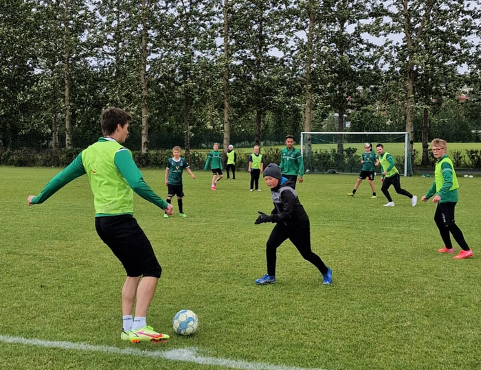 Á Fífuvöllum í Kópavogi í dag var Breiðablik í óða önn í undirbúningi fyrir mótið og fóru nýstárlegar leiðir. Leikmenn og þjálfarar meistaraflokks karla sem tróna á toppi Bestu deildarinnar mættu og stýrðu æfingunni og sýndu lipra takta í spilinu.