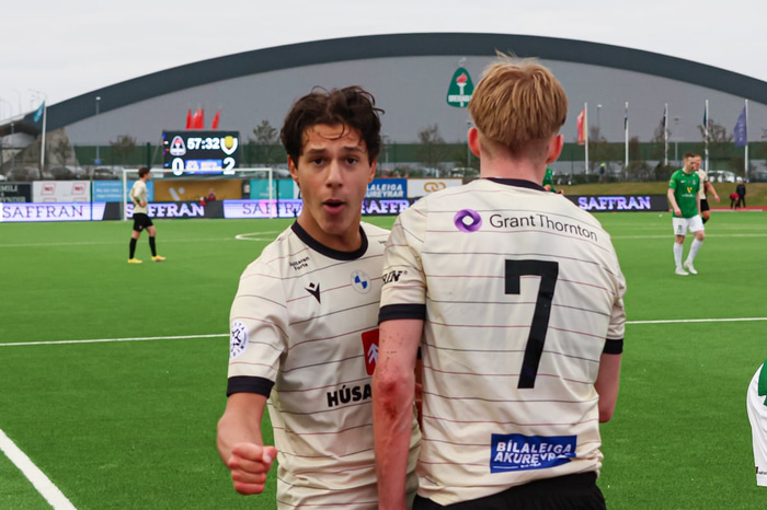 „Já, hann spilaði með 2. flokki í gær og er búinn að æfa með okkur og U19 liðinu. Þetta lítur mjög vel út og engin eftirköst eða neitt. Síðasta hindrun hjá strákum sem lenda í svona meiðslum er bara að þora að fara í fyrstu tæklinguna eða svona; treysta ökklanum. Ég tel hann vera búinn að gera það."