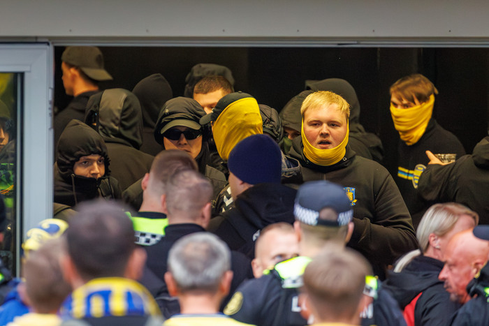 Hópur stuðningsmanna liðsins var með læti í kringum fyrri viðureignina gegn Víkingi í forkeppni Sambandsdeildarinnar en Víkingur vann þann leik 3-0.