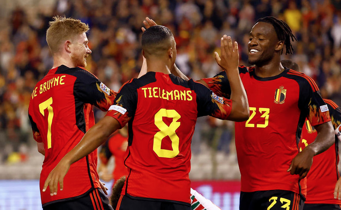 Í riðli 4 vann Belgía lið Wales, 2-1. Kevin de Bruyne og Michy Batshuayi lögðu upp fyrir hvorn annan í fyrri hálfleiknum áður en Kieffer Moore minnkaði muninn í síðari hálfleiknum.