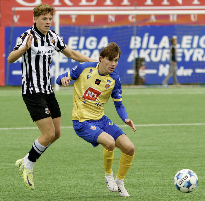 KA vann endurkomusigur gegn KR í neðri hlutanum í Bestu deildinni í gær. KA leiðir kapphlaupið um Forsetabikarinn en KR er í vandræðum, liðið er án sigurs í síðustu fjórum leikjum og er í fallsæti.