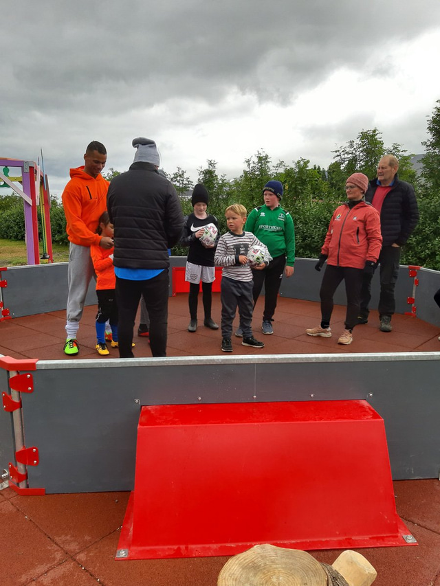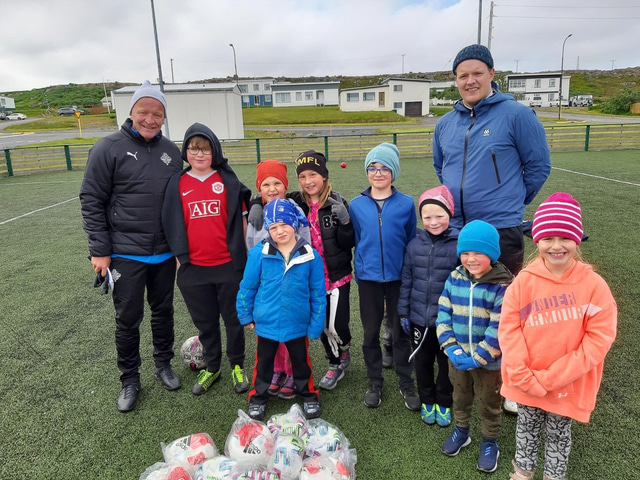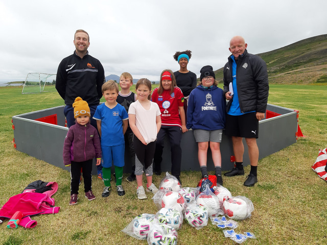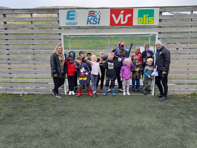 Súðavík mætti okkur í miklum vindi og rigningu, Covid að hræða okkur aðeins, en við mættum og tókum allt á fullt. 3 krakkar og 2 foreldrar ásamt Halldóri mætt. Krakkarnir fengu að spreyta sig á pönnuvellinum í klukkutíma. Inn á milli hleyptum við foreldrunum í bolta, allir velkomnir í pönnubolta. Enginn munur á gleði barnanna eða foreldranna enda fótbolti skemmtilegur. Halldór æstur í að kaupa pönnuvöll og væri það frábært fyrir Súðavík að eignast svona völl.