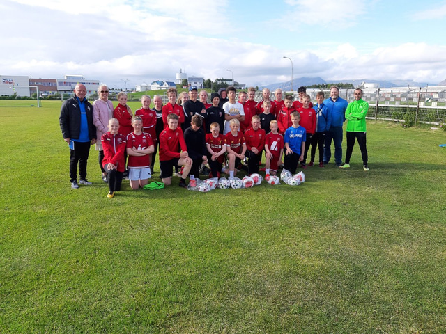 33 krakkar mættir og 3 þjálfarar og auðvitað Marteinn. Krakkarnir glaðir og ánægðir með heimsókn frá KSÍ. Allt á fullu í 90 mínútur, og aginn á krökkunum til fyrirmyndar. Marteinn, Jóna, Guðmann og Baddi, takk fyrir hjálpina . Krakkarnir mjög heppin með þessa þjálfara og heimurinn væri betri ef öll bæjarfélög ættu einn Martein, þvílíkt ást sem hann hefur fyrir knattspyrnunni og börnunum, unun að fylgjast með honum