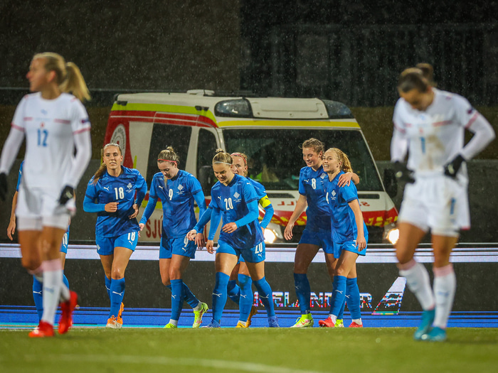 Ísland vann 4-0 sigur gegn Tékklandi í undankeppni HM í kvöld. Frábær sigur í lykilleik í riðlinum.