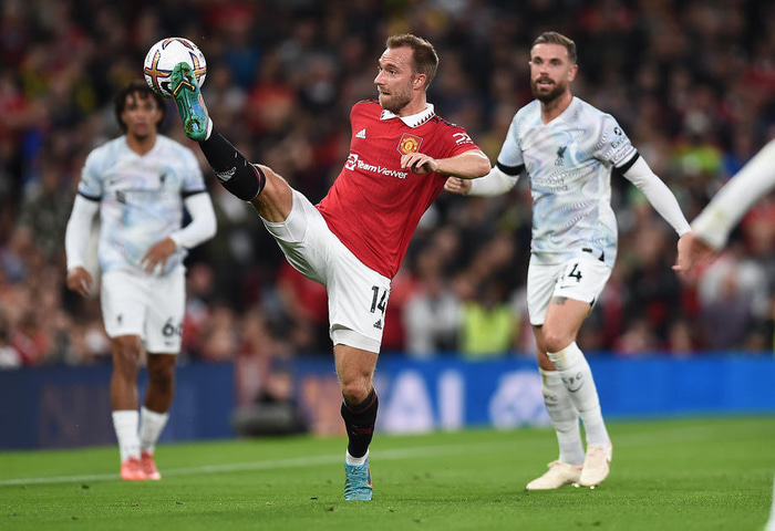 Erik ten Hag, stjóri Man Utd, gerir eina breytingu á sínu liði. Christian Eriksen er klár í slaginn og hann fer í liðið á kostnað Fred.