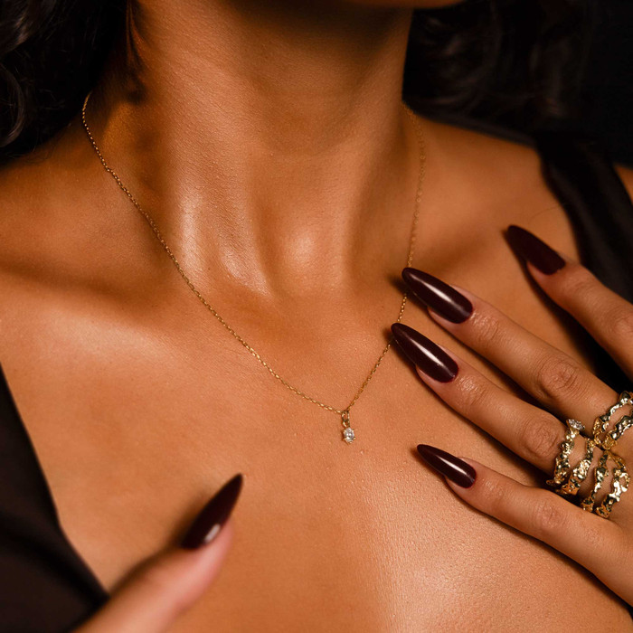 Hálsmen úr 14kt gulli eða hvítagulli með .25ct Oval cut demanti.