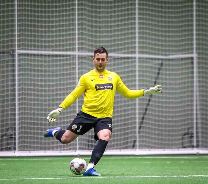 „Við vorum með Ómar Castaldo hjá okkur, hann er farinn norður á Akureyri og ætlar að prófa sig þar í 1. deildinni. Við erum með 2. flokks markmann með Aroni núna, Sigurpáll Sören Ingólfsson sem var varamarkvörður KV síðasta sumar og lék með 2. flokki. Það er efnilegur strákur sem er að æfa með okkur núna, en við þurfum að finna okkur einhvern með Aroni og við munum halda áfram að skoða þau mál."