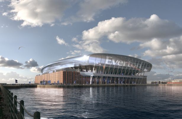 Eins og sjá má á meðfylgjandi tölvuteiknuðu myndum verður leikvangurinn allur hinn glæsilegasti og mun standa við Mersey ána.