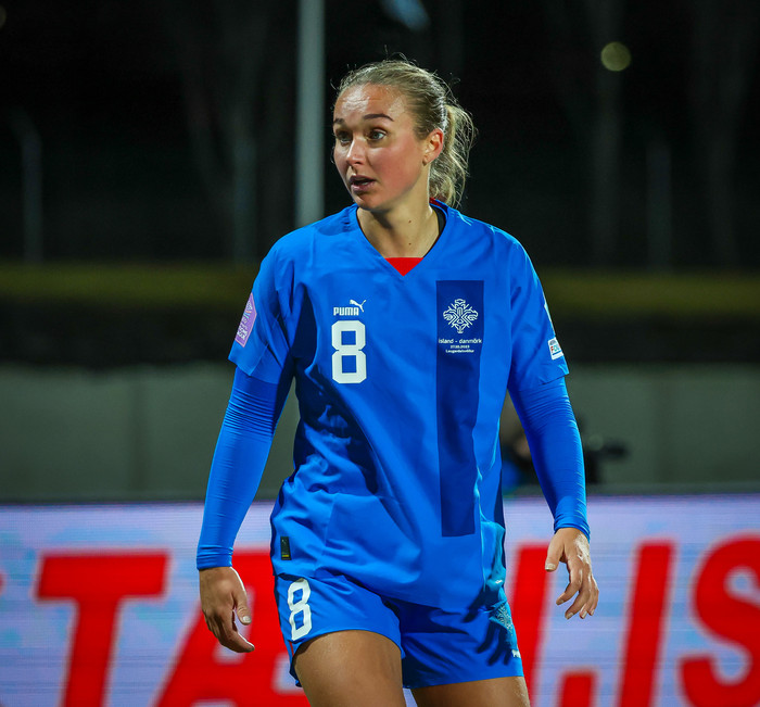 Skoraði mark Íslands af harðfylgi og það var kraftur í henni á miðsvæðinu.