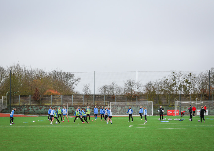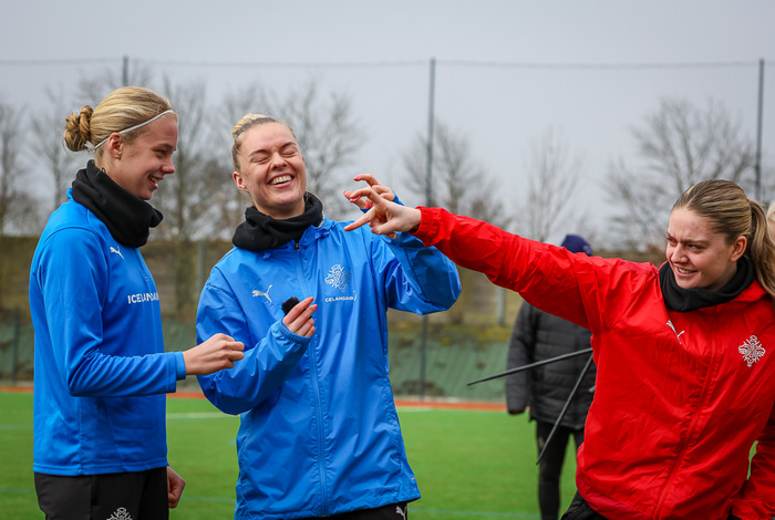 Íslenska liðið tók létta upphitun og fór svo í taktík þegar það æfði í Le Mans í morgun en ekki var æft á keppnisvellinum að þessu sinni heldur æfingavelli í borginni.
