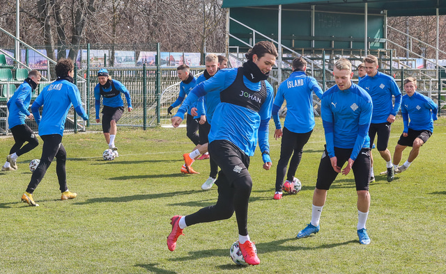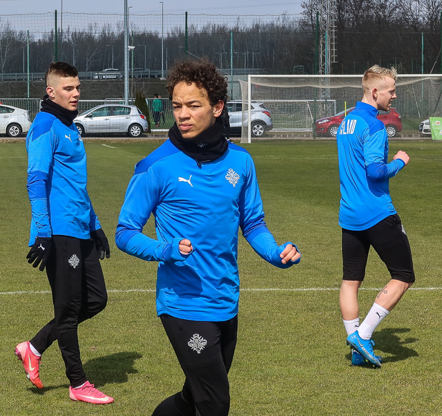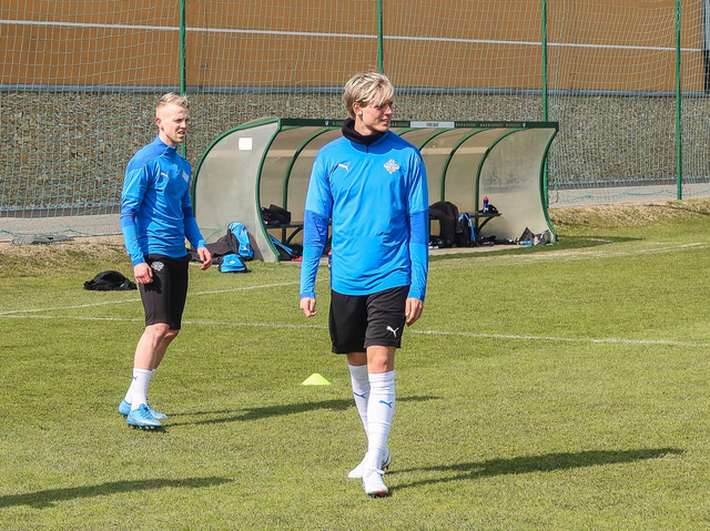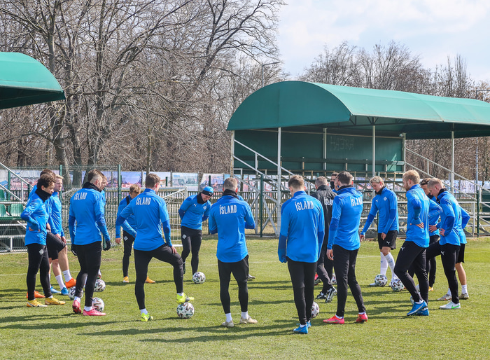Í dag voru tvær æfingar, sú fyrri var opin á meðan á upphitun stóð og sú seinni lokuð þar sem farið var yfir taktíska hluti. Myndir frá fyrri æfingunni má sjá hér að neðan.