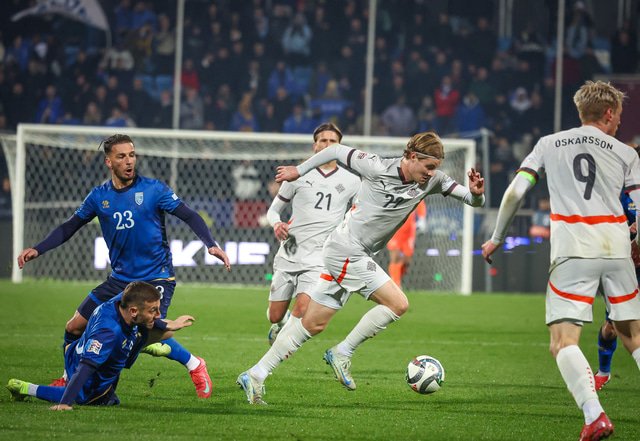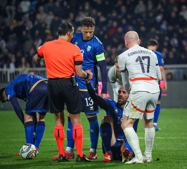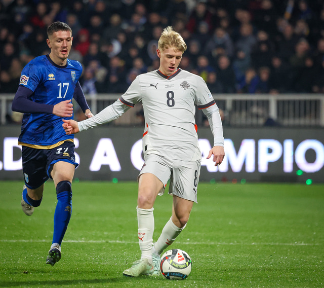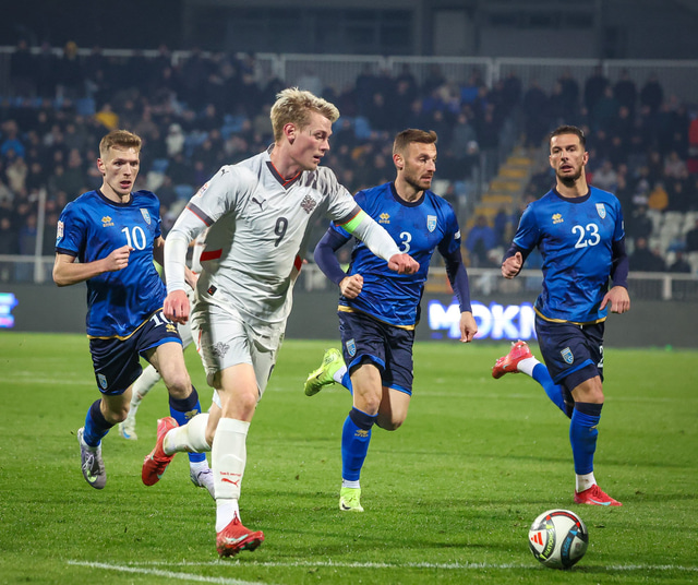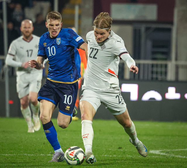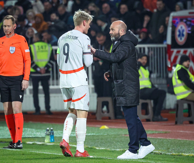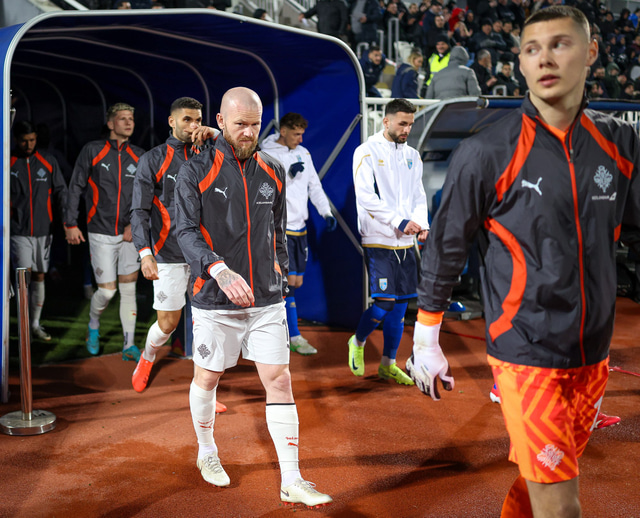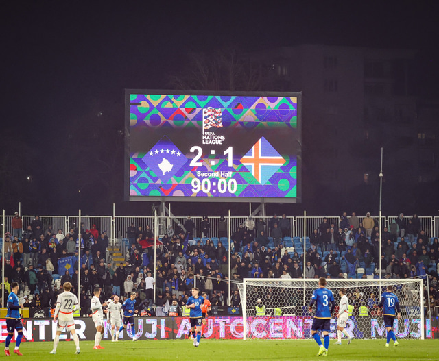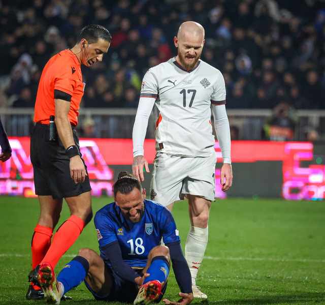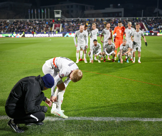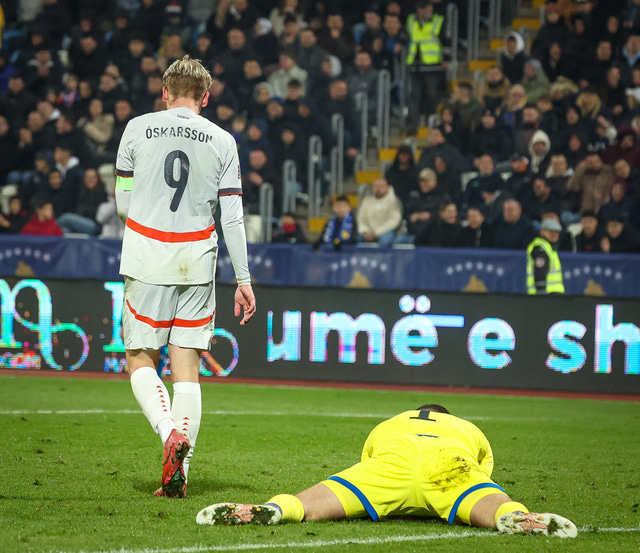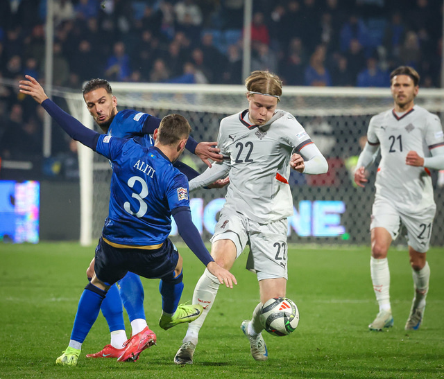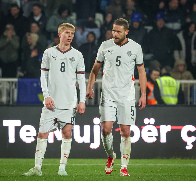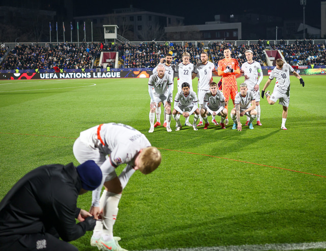 Ísland tapaði 2 -1 gegn Kósovó í Pristína í umspili Þjóðadeildarinnar á fimmtudaginn en seinni leikurinn er í kvöld. Hér að neðan er myndaveisla úr fyrri leiknum.