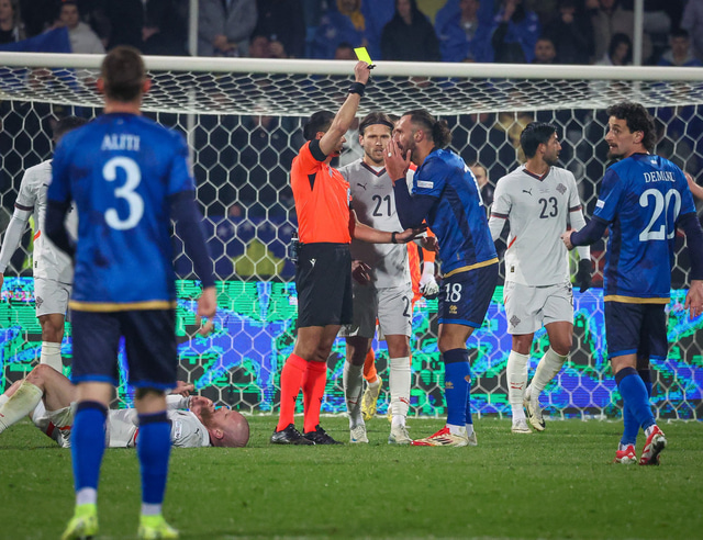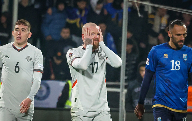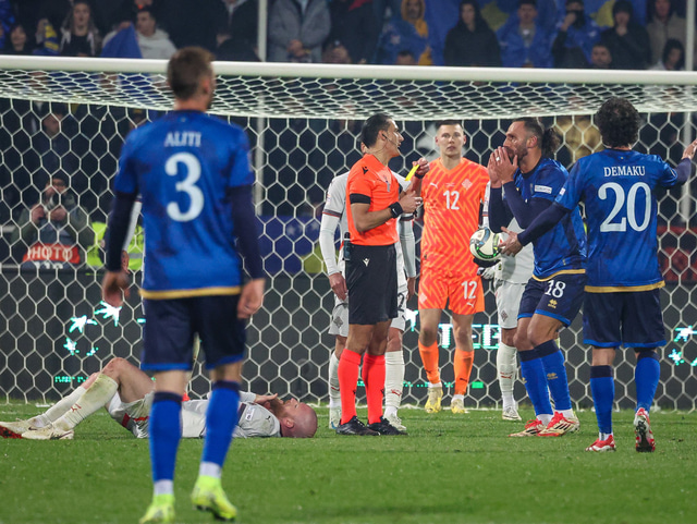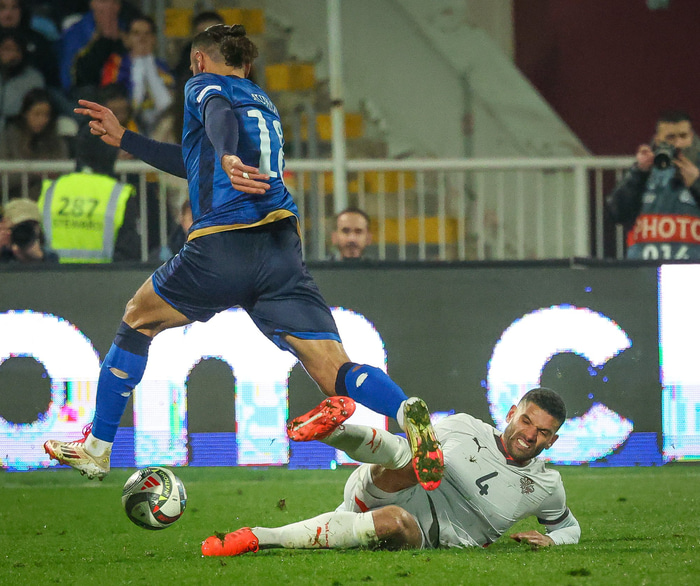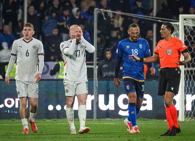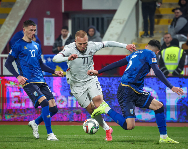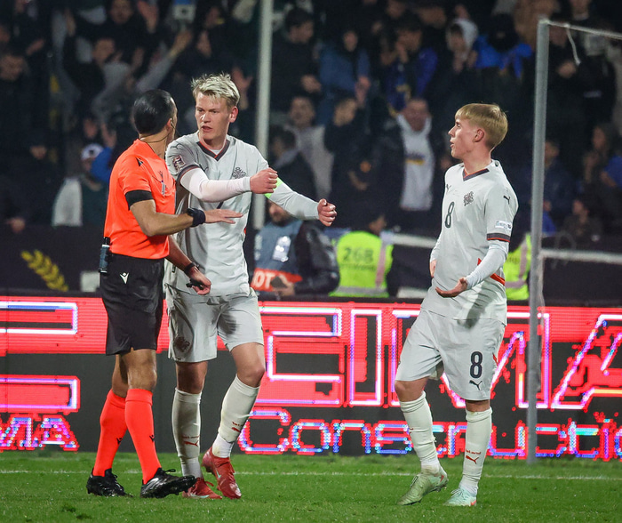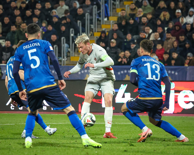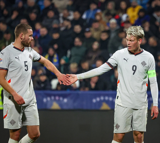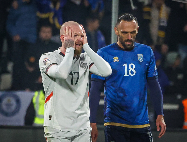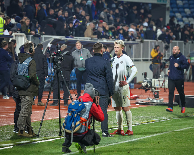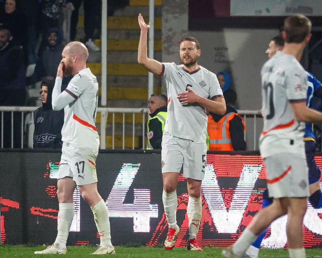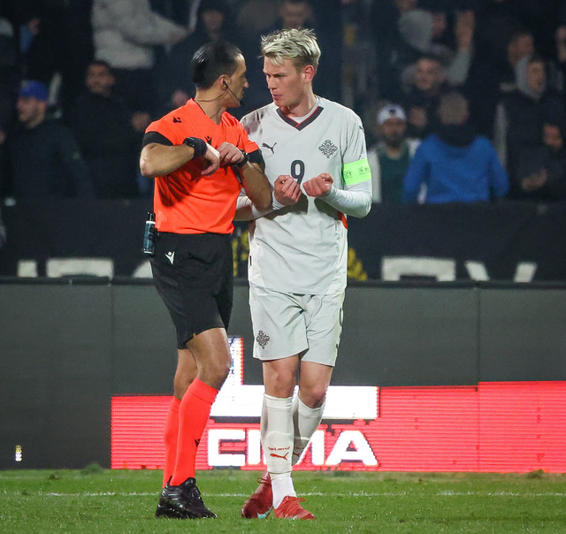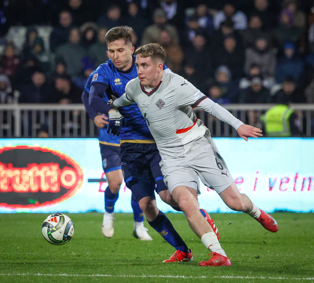 Ísland tapaði 2 -1 gegn Kósovó í Pristína í umspili Þjóðadeildarinnar á fimmtudaginn en seinni leikurinn er í kvöld. Hér að neðan er myndaveisla úr fyrri leiknum.