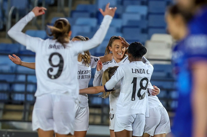 Madrídarliðið mætti til leiks reiðubúið að skrifa söguna. Alba Redondo kom Real Madrid yfir undir lok fyrri hálfleiks með skalla eftir fyrirgjöf Caroline Möller.