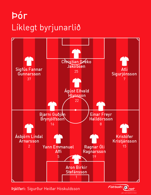 Veikleikar: Það voru breytingar núna stuttu fyrir mót. Ibrahima Balde var einn besti leikmaður Lengjudeildarinnar á síðasta tímabili en hann yfirgaf félagið á dögunum þar sem hann var ósammála þjálfarateyminu um hvaða stöðu hann ætti að spila. Balde átti að spila sem sóknarmaður en það er staða sem Þórsarar eru kannski ekkert frábærlega mannaðir í á þessum tímapunkti. Það er að koma Norðmaður til félagsins en hann er spurningamerki í Bestu deildinni. Það vantar kannski aðeins upp á breiddina miðað við önnur lið og margir leikmenn sem eru að stíga sín fyrstu skref í Bestu deildinni og þurfa að venjast þessu gæðastigi. Þórsarar fá mjög erfitt leikjaprógramm í byrjun og ef liðið fer hægt af stað, þá gæti það haft áhrif á það sem gerist í framhaldinu.