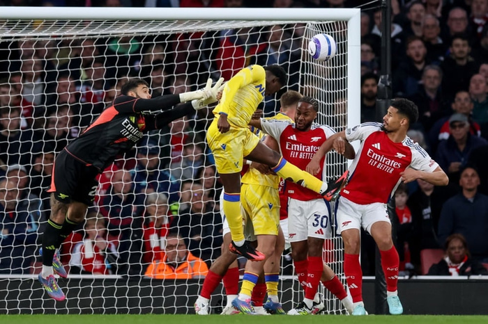 Eberechi Eze, Adam Wharton, Tyrick Mitchell og Dean Henderson eru liðsfélagar hans sem fá 7 í einkunn, á meðan Jurriën Timber, Jakub Kiwior, Myles Lewis-Skelly, Declan Rice og Leandro Trossard fá sjöur í liði heimamanna.