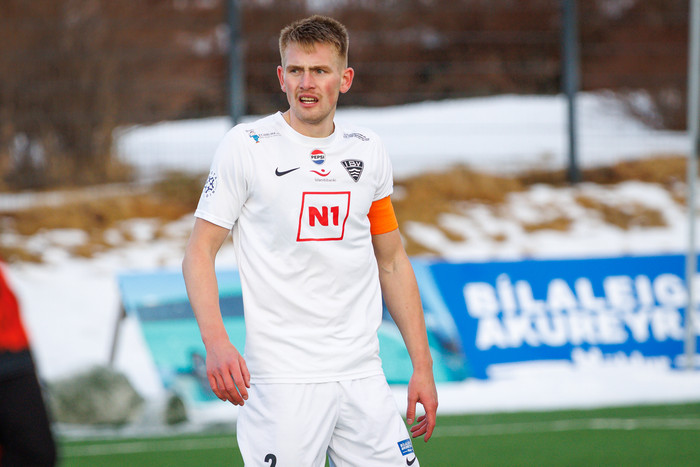 „Fyrri hálfleikur var ekki boðlegur. Við vitum alveg að við erum að spila við gott lið, erum að spila við KR-inga sem eru sjóðandi heitir. En það skiptir ekki máli. Það er sama hvaða lið mætir ef við sýnum þessu svona lítinn áhuga. Þá verður bara valtað yfir okkur," segir Sigurður sem bar fyrirliðabandið í dag.