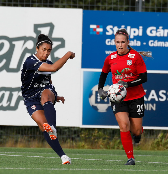 Afturelding varð á föstudaginn fyrsta liðið til að vinna sigur á Þrótti í Inkasso-deild kvenna en liðið vann 1-0 í Mosfellsbænum. Raggi Óla var á leiknum og tók þessar myndir.