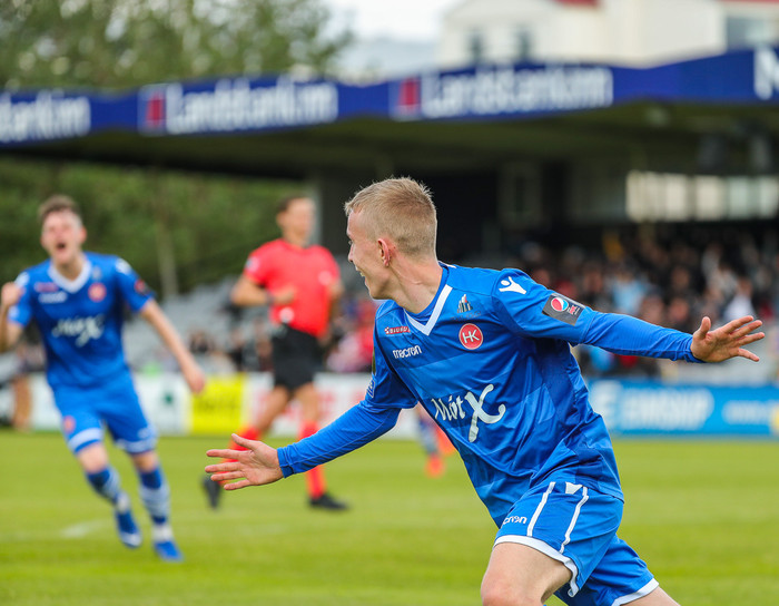 Valgeir Valgeirsson var valinn besti leikmaður 2. umferðar Pepsi Max-deildarinnar í gær. Þá nafnbót fékk hann fyrir frábæra frammistöðu sína gegn KR á laugardag. Valgeir skoraði eitt þriggja marka HK í leiknum og lagði upp annað mark leiksins.