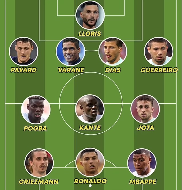 Liðið er að sjálfsögðu gríðarlega sterkt enda feikilega öflugir leikmenn í báðum þessum liðum. Sjö leikmenn Frakklands eru í liðinu en fjórir frá Portúgal.