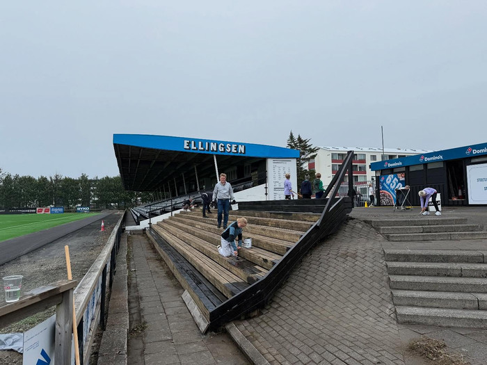 KR-ingar voru með sérstakan tiltektardag í gær þar sem allt var gert klárt fyrir fyrsta heimaleikinn í Bestu deildinni á nýja gervigrasinu á Meistaravöllum. KR fær Breiðablik í heimsókn klukkan 17 á laugardaginn.
