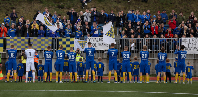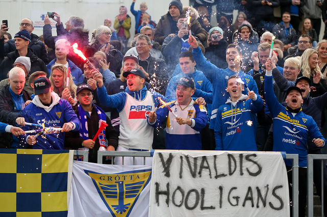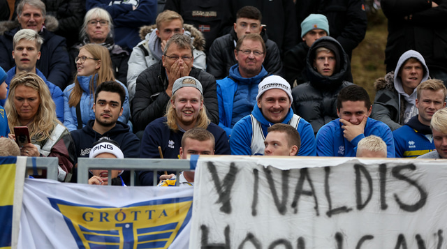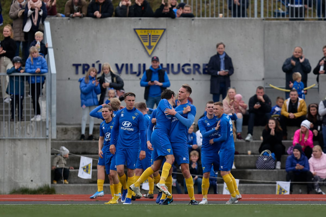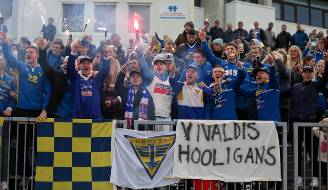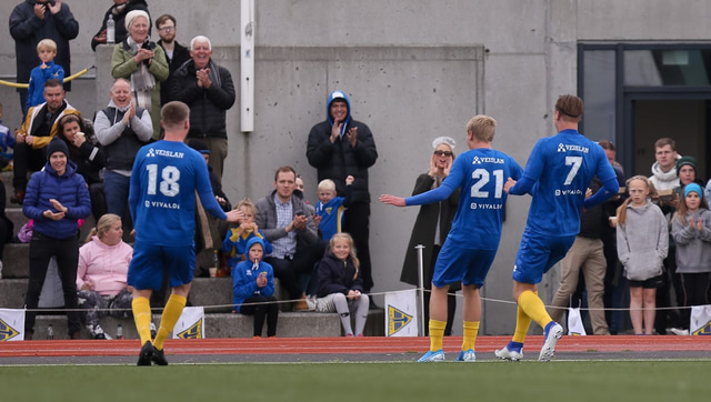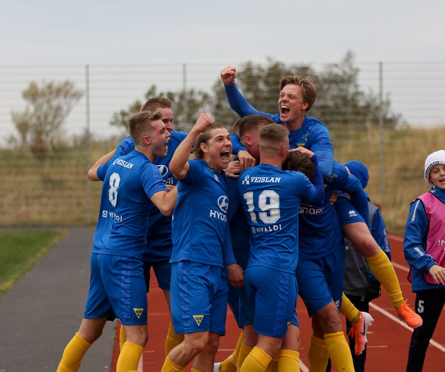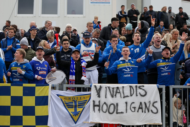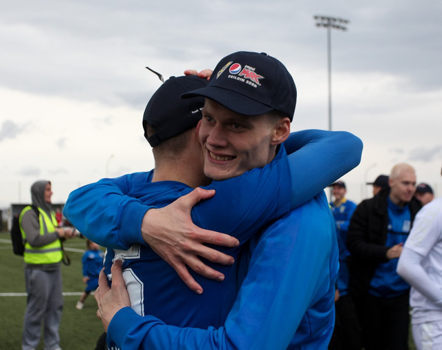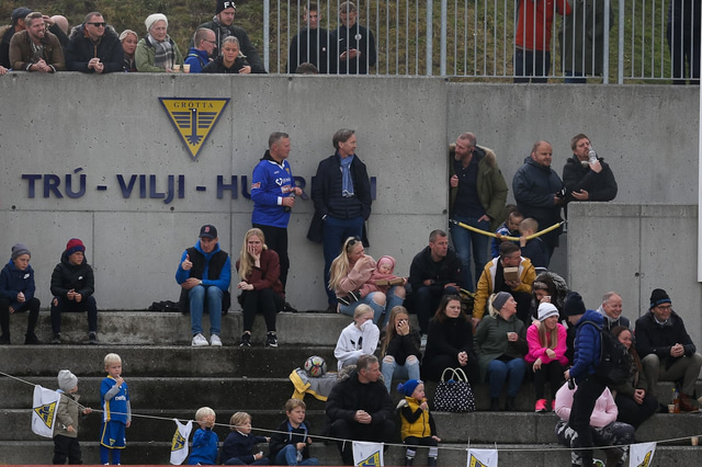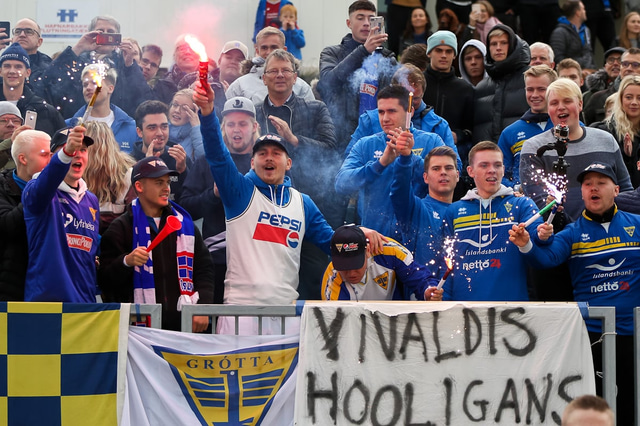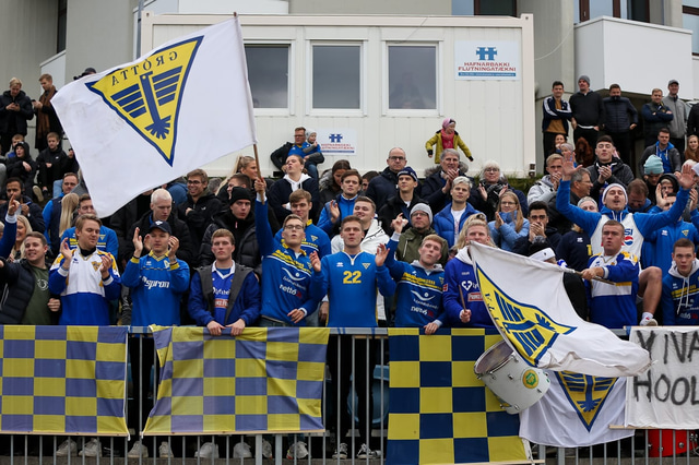 Grótta vann í fyrrakvöld Inkasso-deild karla með 4 - 0 sigri á Haukum en um leið felldu þeir Haukana niður í 2. deild. Eyjólfur Garðarsson tók þessar myndir á leiknum.