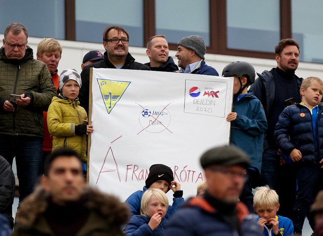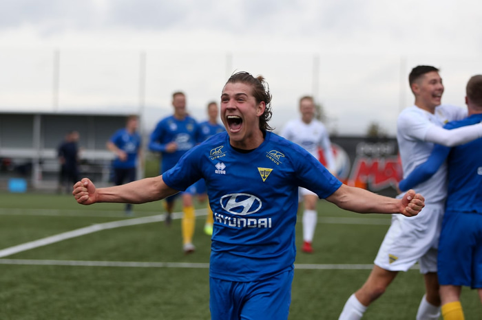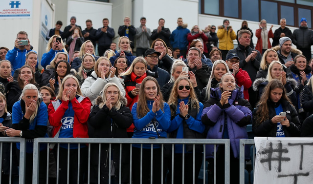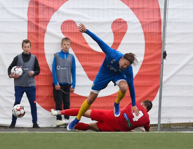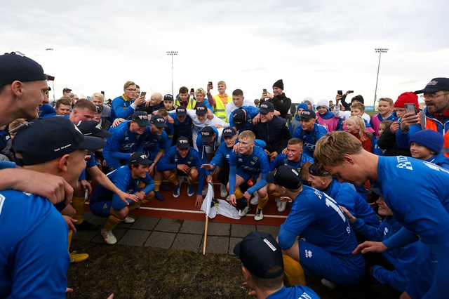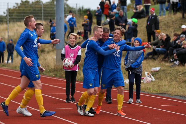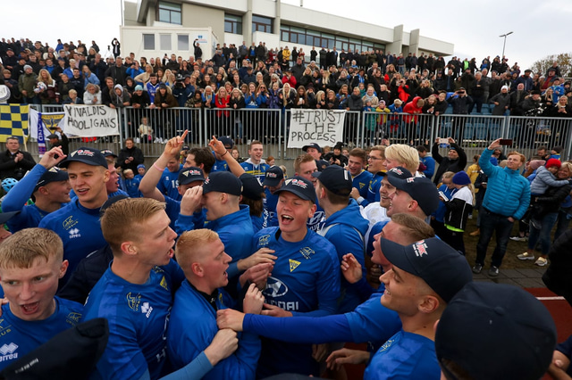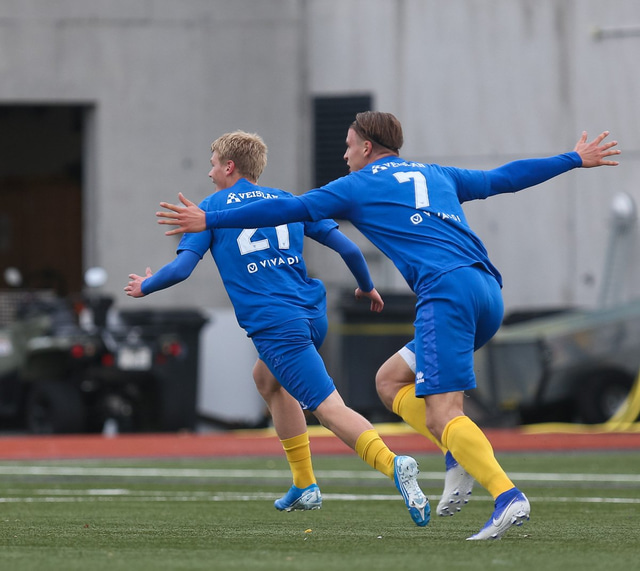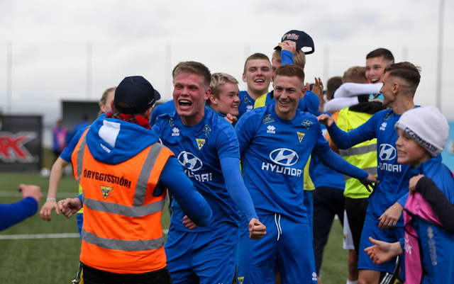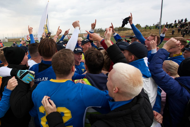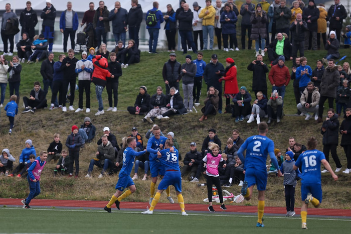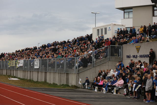 Grótta vann í fyrrakvöld Inkasso-deild karla með 4 - 0 sigri á Haukum en um leið felldu þeir Haukana niður í 2. deild. Eyjólfur Garðarsson tók þessar myndir á leiknum.