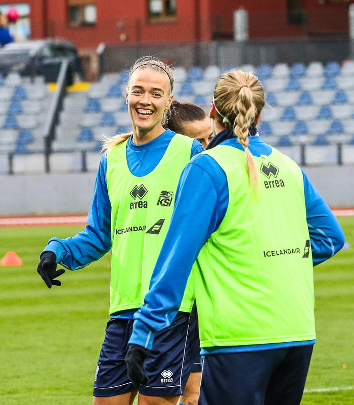 „Ég held að það henti okkur bara vel. Okkur finnst gaman að hafa boltann og við þurfum bara að vera rólegar og yfirvegaðar. Velja réttar sendingaleiðir, vera einbeittar varnarlega og nýta færin okkar sóknarlega.“