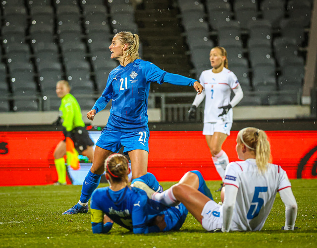 Ísland vann frábæran 4 - 0 sigur á Tékklandi í undankeppni HM 2023 í gærkvöldi. Hér að neðan eru myndir frá Laugardalsvelli.