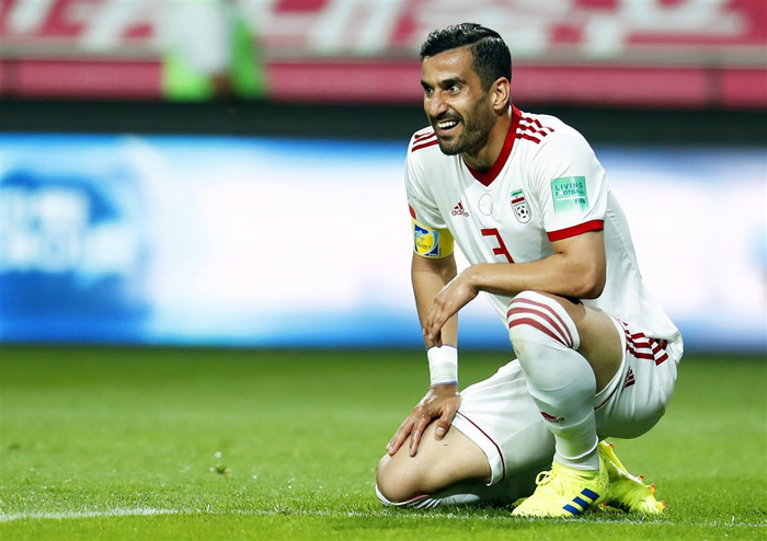 Ehsan Hajsafi, fyrirliði Íran, svaraði spurningum fjölmiðla á fréttamannafundi eftir 6-2 tap gegn Englandi í fyrstu umferð heimsmeistaramótsins.