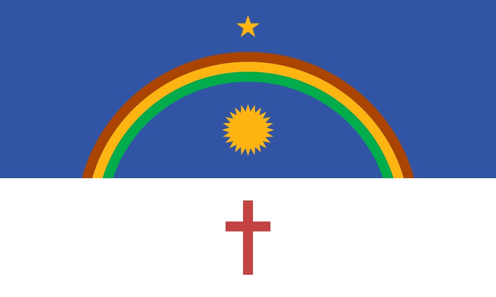 Málið með fánann er að það er mynd sem svipar til regnboga á honum. Þetta er þó ekki eiginlegur regnbogi auk þess að vera náttúrulegur partur af fylkisfána Pernambuco fylkis í Brasilíu, þaðan sem stuðningsmaðurinn er.