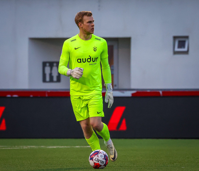 „Ég er markvörður Fimleikafélagsins í dag og undanfarin tvö ár og líður vel í Kaplakrika í kringum það góða fólk sem er hérna. Ég á eins og staðan er eitt ár eftir mínum samning af þeim þremur árum sem við skrifuðum undir í nóvember 2022," segir Sindri sem var svo spurður út í þá umræðu og staðreynd að FH séð að skoða markmannsmálin hjá sér.