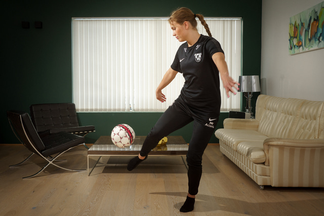 Leikmenn meistaraflokks kvenna hjá FH hafa þurft að æfa heima eftir að samkomubann var sett á.