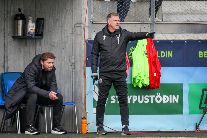„VIð erum búnir að gera fína hluti og getum spilað ágætis fótbolta. VIð gerðum það ekki í dag en vonandi getum við sýnt það á mánudaginn í næsta leik og haldið áfram að vaxa sem lið," sagði Rúnar.