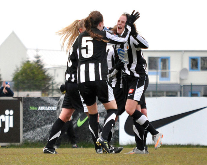 „Það var yndislegt að skora, ég var búin að lofa að skora og það gekk upp," sagði Freyja Viðarsdóttir eftir að hún tryggði KR 2-1 sigur á Breiðablik með þrumufleyg í lokin í kvöld en hvað hugsaði hún þegar hún sá á eftir boltanum?
