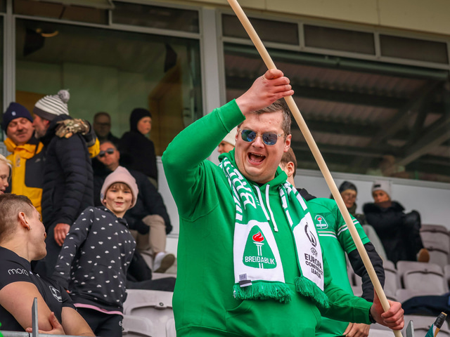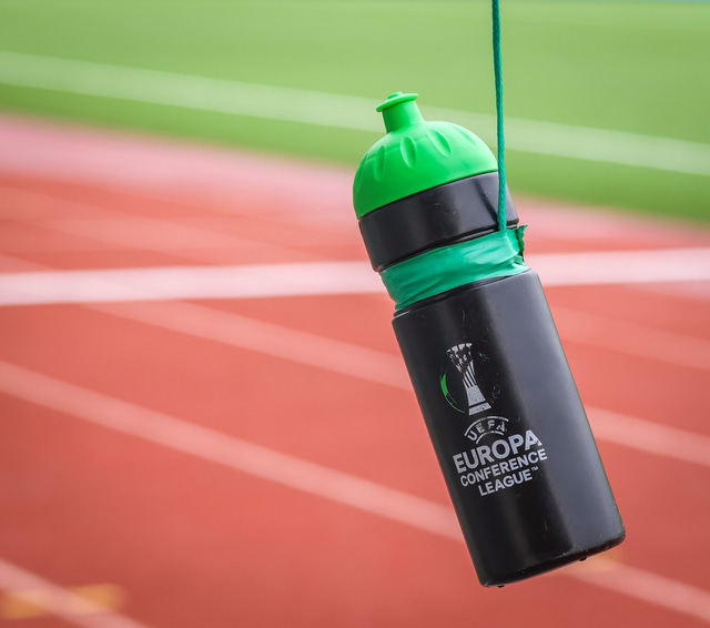 Stuðningsmenn Blika eignuðu sér brúsann og nýta hann í stúkunni á Kópavogsvelli.