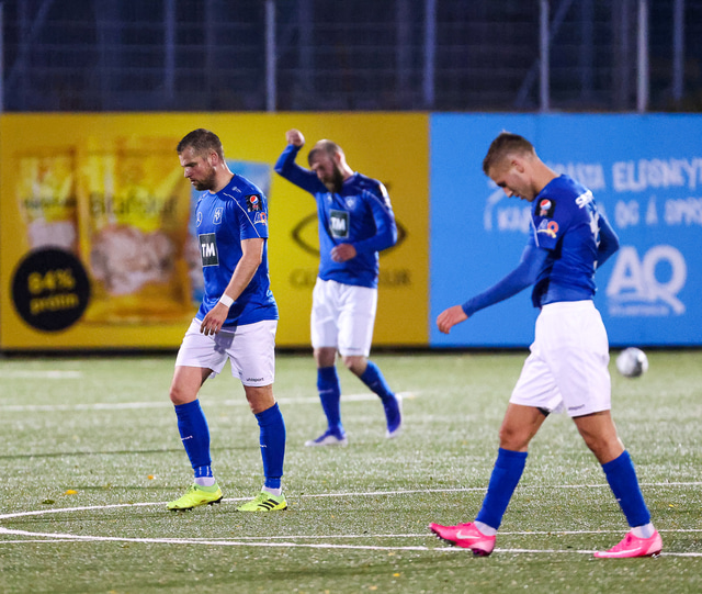Haraldur varði boltann fyrir markið í stað þess að vísa honum út til hliðar og aftur í horn. Eftirleikurinn fyrir Patrik Pedersen var ákaflega einfaldur.