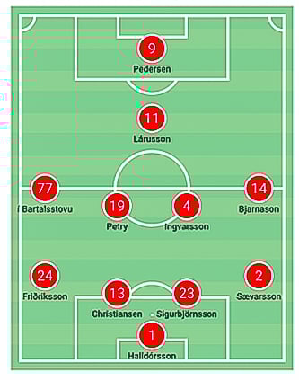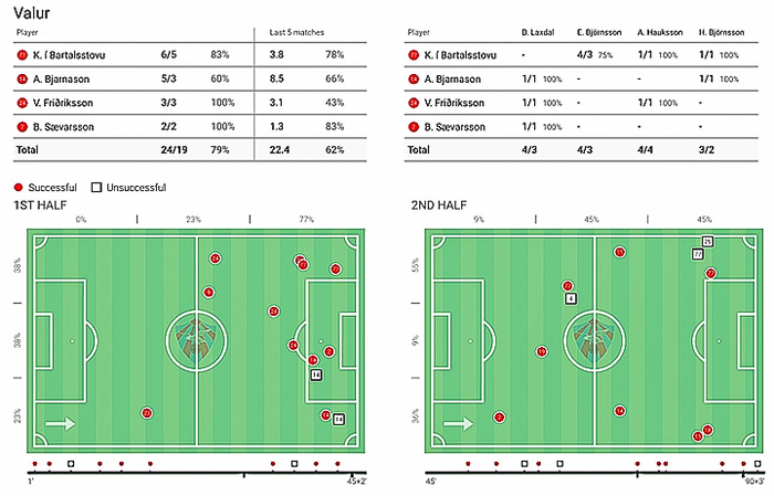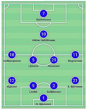 Valsmenn voru án fyrirliðans Hauks Páls og kom Einar Karl inn á miðjuna í hans stað. Að öðru leyti hefur Heimir keyrt mikið á þessu liði stærstan hluta mótsins. Hann er búinn að vinna markvisst með þennan kokkteil stærstan hluta mótsins og verið að fínstilla áherslurnar eftir því sem liðið hefur á mótið. Stærsta breytingin frá síðasta tímabili er sú að liðið hefur þróast úr því liði sem best var að halda bolta í deildinni yfir í besta varnarliðið sem býr yfir góðum skyndisóknar eiginleikum.