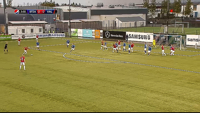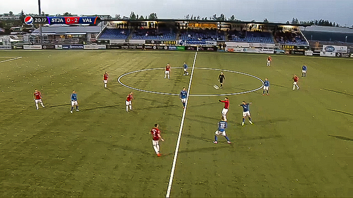Áfram héldu Valsmenn að herja á Stjörnumennina. Valgeir Lunddal var ákaflega áberandi á þessum kafla leiksins og það er gaman að fylgjast með því hversu vel hann les leikinn. Hversu mikill íþróttamaður hann er með mikla yfirferð og mýkt í hreyfingum með og án bolta. Þá er hann einn mest skapandi varnarmaður deildarinnar þegar hann kemur með hlaup og tengingar úr djúpinu.