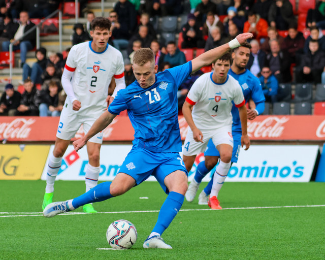 U21 karla tapaði 1 - 2 fyrir Tékklandi í umspili um sæti á EM í gærkvöldi en um var að ræða fyrri leik liðanna. Haukur Gunnarsson tók þessar myndir á leiknum.