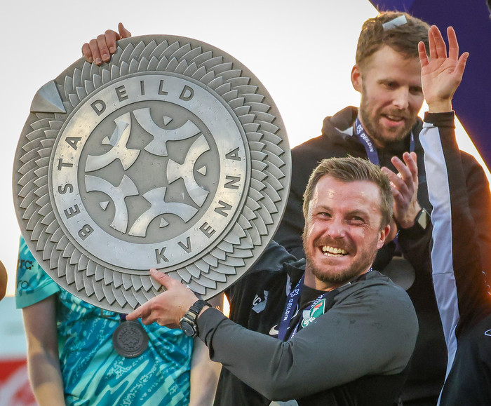 „Ég er ótrúlega ánægð undir hans stjórn og hann var stór ástæða fyrir því að ég fór yfir. Ég hafði trú á honum sem þjálfara, sá hvað hann gerði með Þrótti og ég hafði trú á að hann gæti bætt minn leik. Hann vantaði leikmann eins og mig í þetta leikkerfi, þannig ég held þetta hafi hentað alveg ótrúlega vel fyrir báða aðila. Ég er ótrúlega ánægð með hann og þjálfarateymið allt; Nik, Eddu, Óla og Sævar - öll frábær og búin að búa til góða stemningu í liðinu," sagði Heiða Ragney.