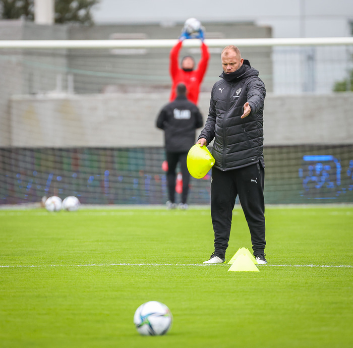 Vanda Sigurgeirsdóttir formaður KSÍ og Arnar Þór Viðarsson landsliðsþjálfari og yfirmaður fótboltamála hafa ekkert viljað tjá sig um þær fréttir að Eiður Smári Guðjohnsen hefur vikið frá störfum sem aðstoðarlandsliðsþjálfari.