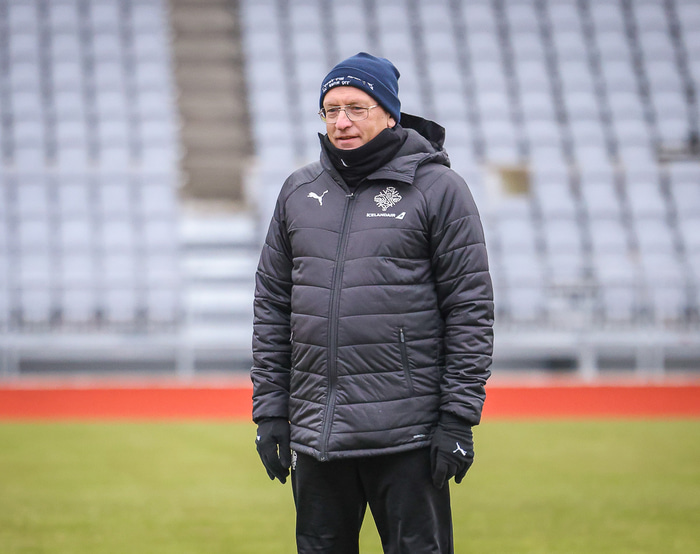 Fréttaritari spurði Steina út í tíðindi gærkvöldsins er varða karlalandsliðið. Eiður Smári Guðjohnsen er hættur sem aðstoðarlandsliðsþjálfari og hafa fjölmiðlar fjallað um að það sé í kjölfar þess að áfengi var haft um hönd í síðustu landsliðferð.