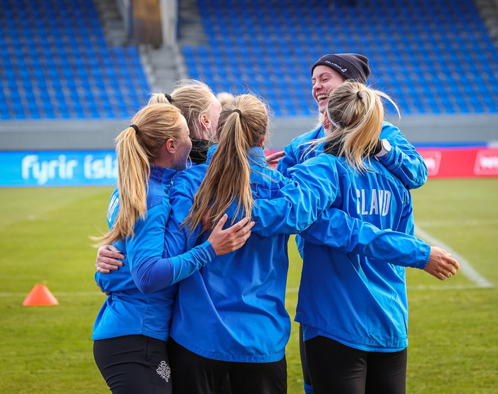 „Það eru allar heilar, allar klárar í leikinn. Það eru engin meiðsli og liggur við engin smá-meiðsli. Það eru tvær vikur síðan að sumar voru að spila, deildirnar voru að klárast í Noregi og Svíþjóð þannig hópurinn er bara í fínu standi og lítur bara vel út."